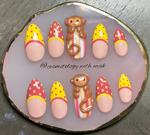 Nails are handmade and crafted with care, they are fully customized to your wants. I have xxl to xxs for options. Any super hard extra detail is $5 more which includes, characters, 3D art (diamonds and pearls excluded), and $5 more for French tips. If it’s too difficult to communicate here, message me on instagram (@cosmetology.with.mak) for details of order, shape, color, length, design, it’s easiest for me to communicate there, if that does not work we can arrange something else. This is a perfect choice for those wanting a good quality set for an affordable price! Give me your ideas and I’ll make it come to life!
